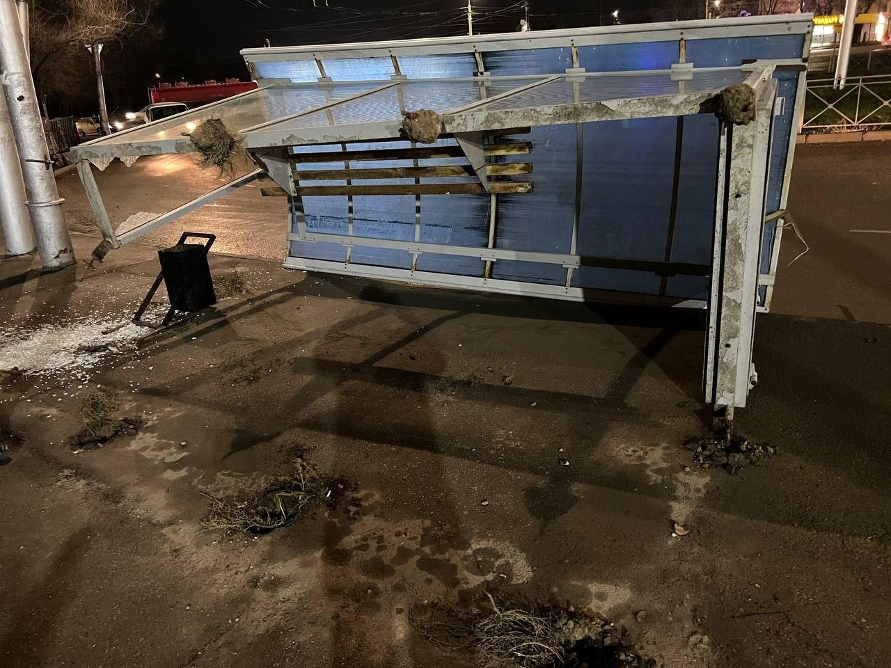 Сильный ветер опрокинул остановочный павильон на женщину.