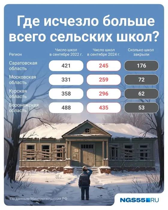 Абсолютным лидером по сокращению числа сельских школ в Приволжском федеральном округе и в целом по стране стала Саратовская область. Здесь за два года было закрыто 176 учебных заведений: с 421 в сентябре 2022 года до 245 в сентябре 2024-го. Таким образом, количество сельских школ уменьшилось почти на 40%.