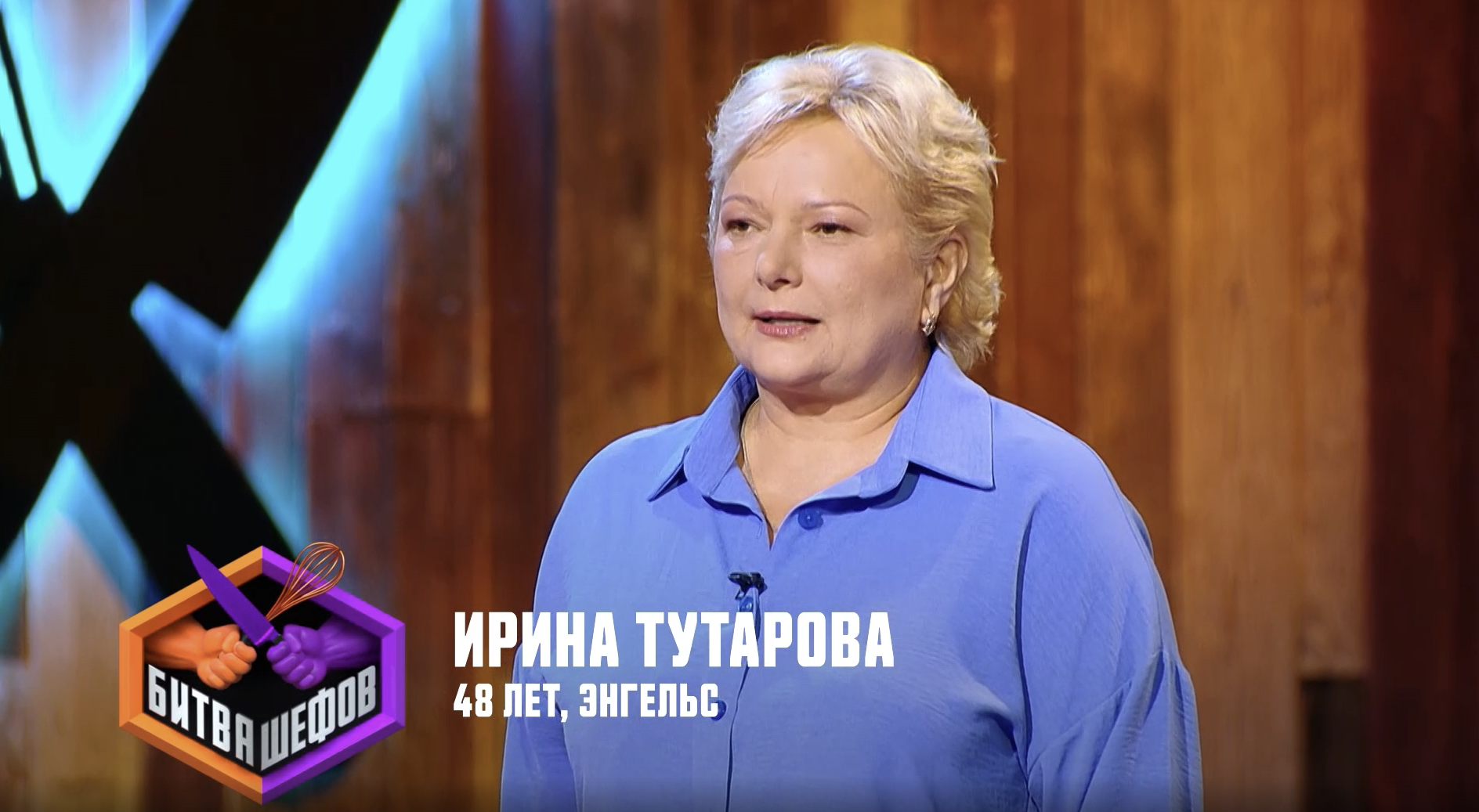 Ирина Тутарова, 48-летняя жительница Энгельса, появилась в 35-й серии пятого сезона кулинарного шоу «Битва шефов». Её выступление состоялось 16 марта на телеканале «Пятница!», где она представила пирог с абрикосовым вареньем.