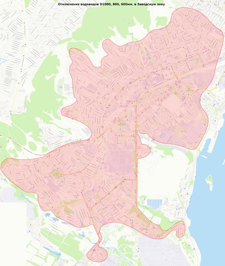 Карта зон отключения водоснабжения в Заводском районе Саратова