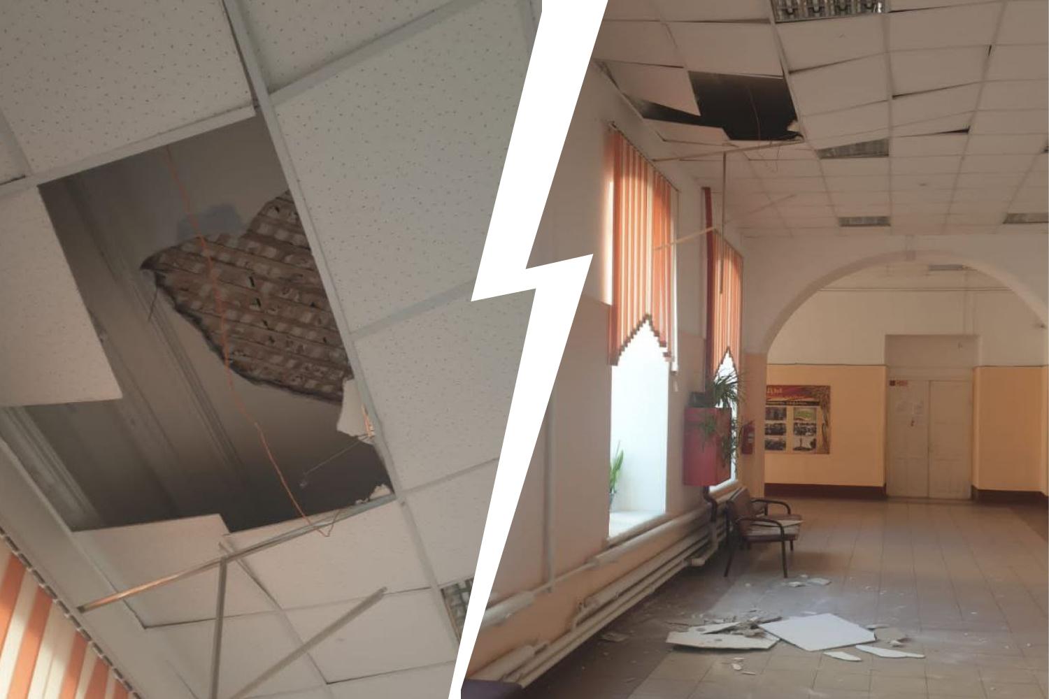 В саратовской школе №71 произошло обрушение потолочной конструкции.