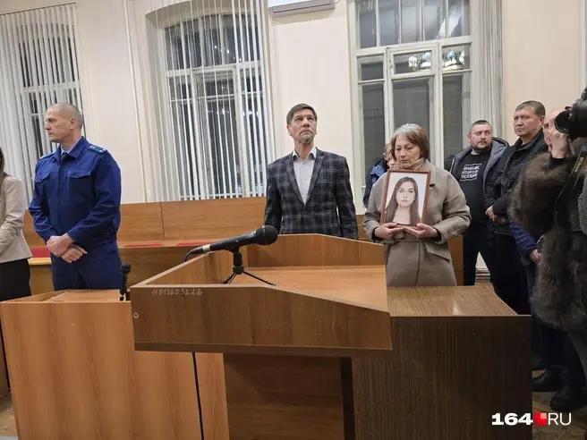 Мать погибшей приходила на судебные заседания с портретом дочери.