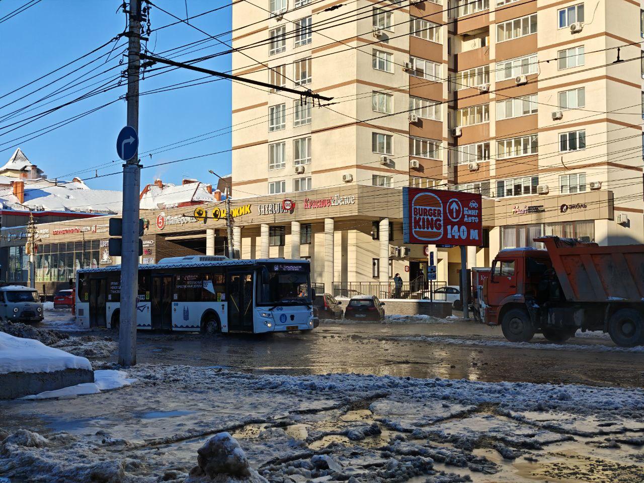 Из-за прорыва водопровода в Саратове затопило несколько улиц, а движение троллейбусов остановилось.