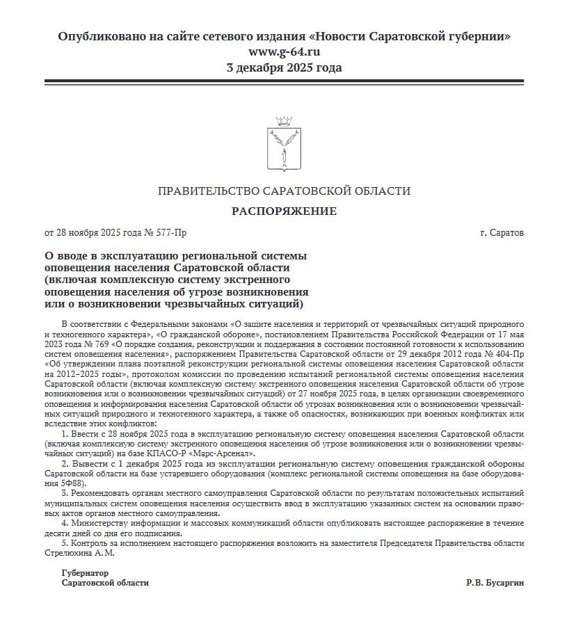 Ранее, в начале декабря 2025 года, в регионе произошла полная замена оборудования для оповещения. Распоряжение об этом, подписанное губернатором, было опубликовано на официальном портале правовой информации.