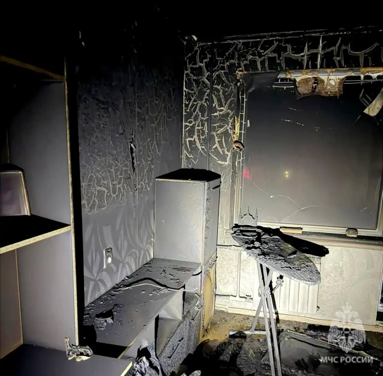 Фотография показывает последствия пожара в квартире погибшего мужчины.