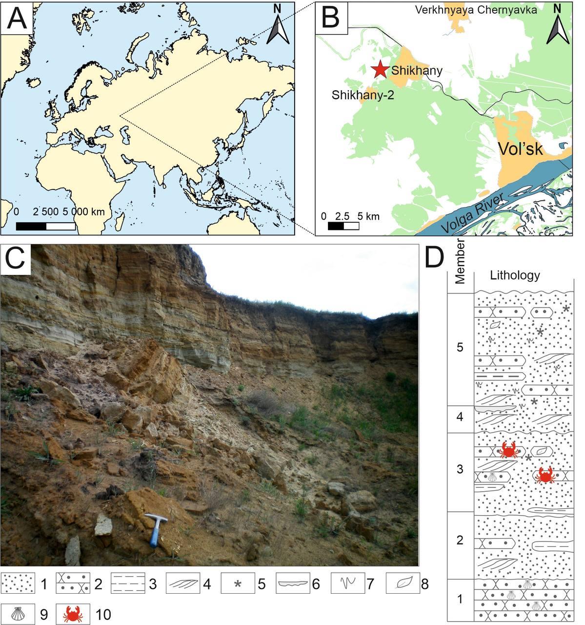 Разрез в районе Шихан, богатый окаменелостями, изучался и раньше, но именно Сергею Сергееву удалось найти остатки крабов. Переслаивающиеся пески и песчаники содержат также многочисленные остатки растений, моллюсков и морских звезд, что позволило уверенно отнести отложения к танетскому ярусу верхнего палеоцена.
