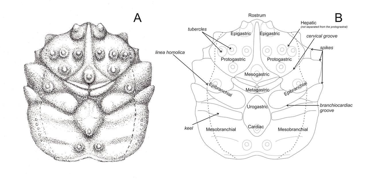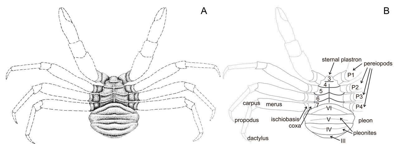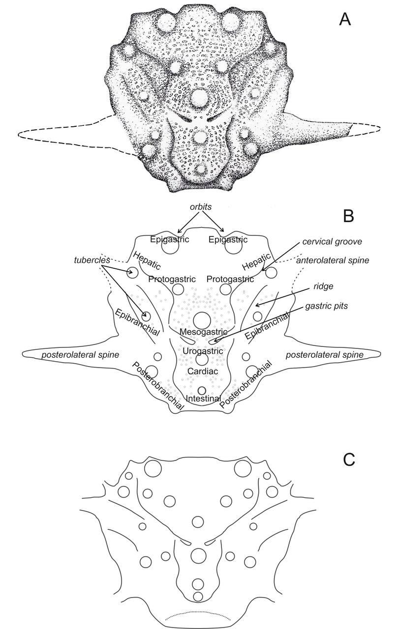 Схематическое изображение краба Latheticocarcinus sergeevi.